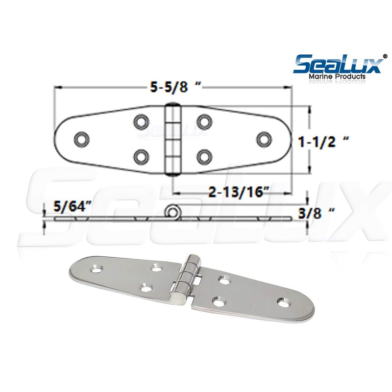 - Pair of SeaLux 5-5/8" x 1-1/2" Large Round Side Strap Hinge