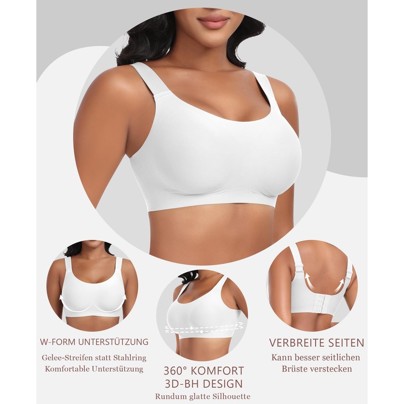 - Seamless smooth design: The women's bra without underwire with seamless and smooth design features soft and flexible jelly-like silicone fixed seams on the bra edges, which allows you a comfortable soft perfect fit, and a thin touch, soft like a cloud. The flexible jelly fixed silicone strips in both widened sides of the bowls can better hide side breasts.