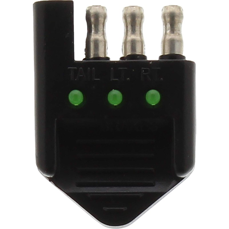 Plug tester into vehicle’s conventional 4-prong flat towing plug. Operate vehicle's turn signals, lights and brakes. When power is present, circuit's green light will glow. Waterproof PVC material