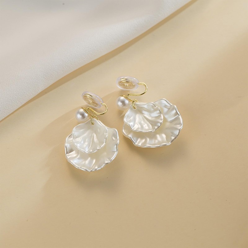 Seashell Pearl Clip-On Earrings for Women Non-Piercing Beach Jewelry Set with Ocean Shell Design Lightweight Summer Accessories for Dresses Outfit