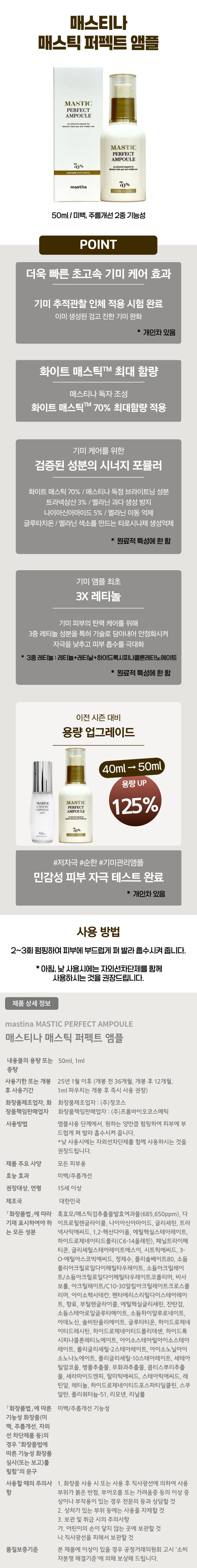 시즌3 최신상 매스티나 매스틱 퍼펙트 기미앰플 50ml 2개1ml 2매