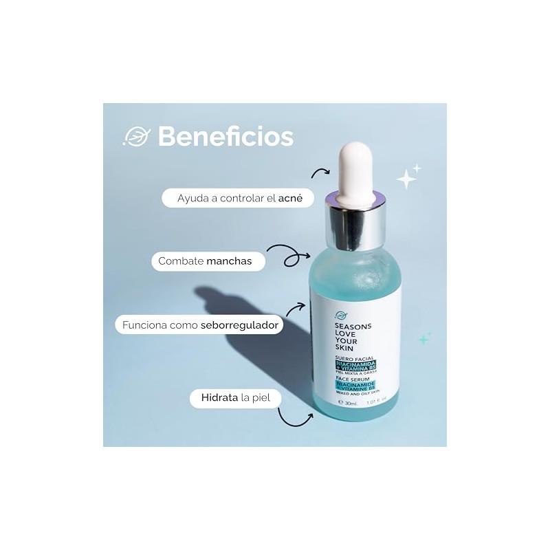 Seasons Love Your Skin Tratamiento con Niacinamida Limpiador Facial en Espuma Detox Serum Facial Niacinamida Protector Solar FPS 50 Efecto Mate