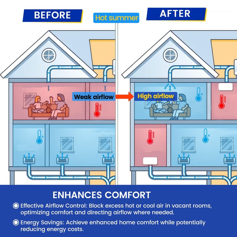 - Airflow Control: Effectively blocks hot or cool airflow in unoccupied rooms, enhancing comfort while directing air where it's needed