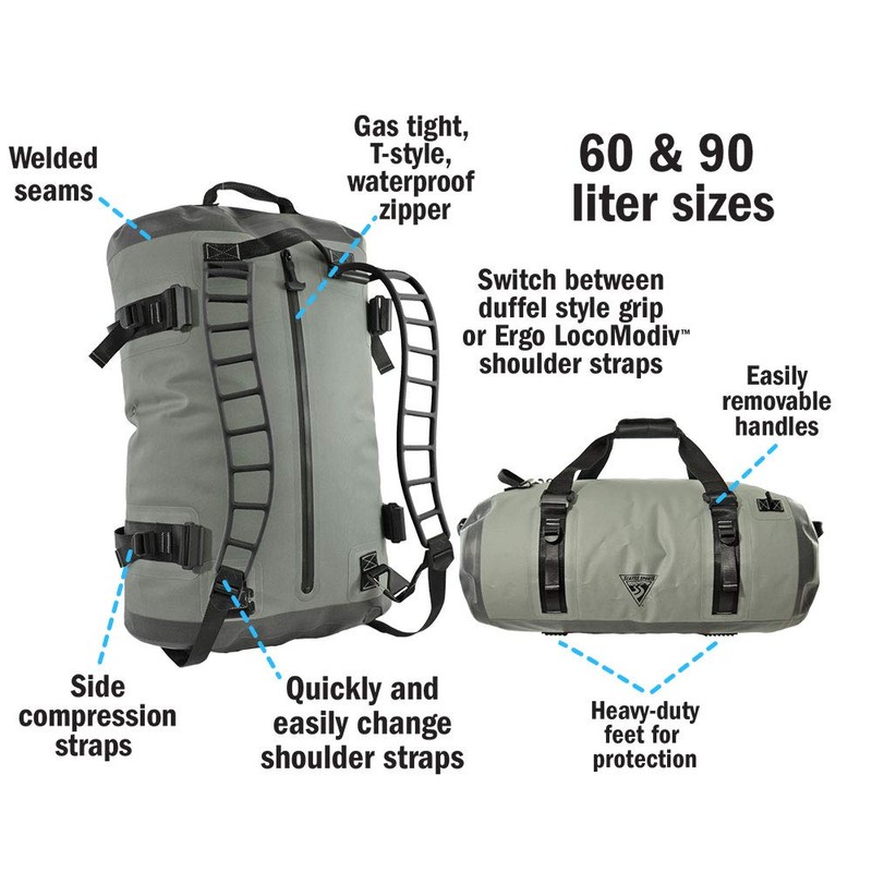 - Waterproof: seriously hardcore, waterproof, duffel/backpack. Gas tight, T-style, waterproof zipper and heavy-duty 600D PU – coated material. Giving you the confidence to take on the snarliest of water adventures
