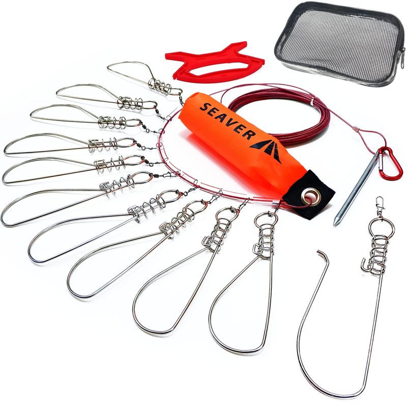 SEAVER Stringer with Float, Rust Resistant, Spring Loaded Hooks, 5/10 Pieces, Wire 16.9 ft (5/10 m), Spare Hooks, Storage Case Included