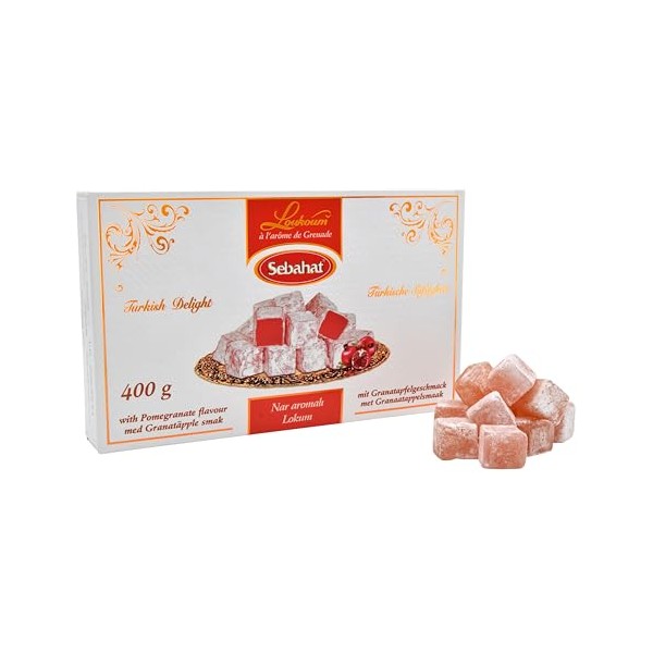 Sebahat Turkish Delight Lokum in Gift Box (Pomegranate Flavour, 400g) 24 Pieces