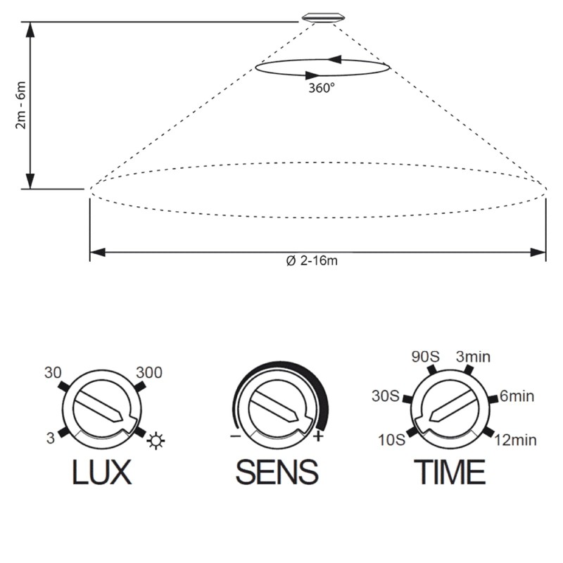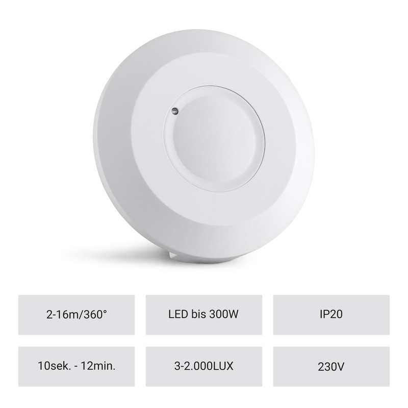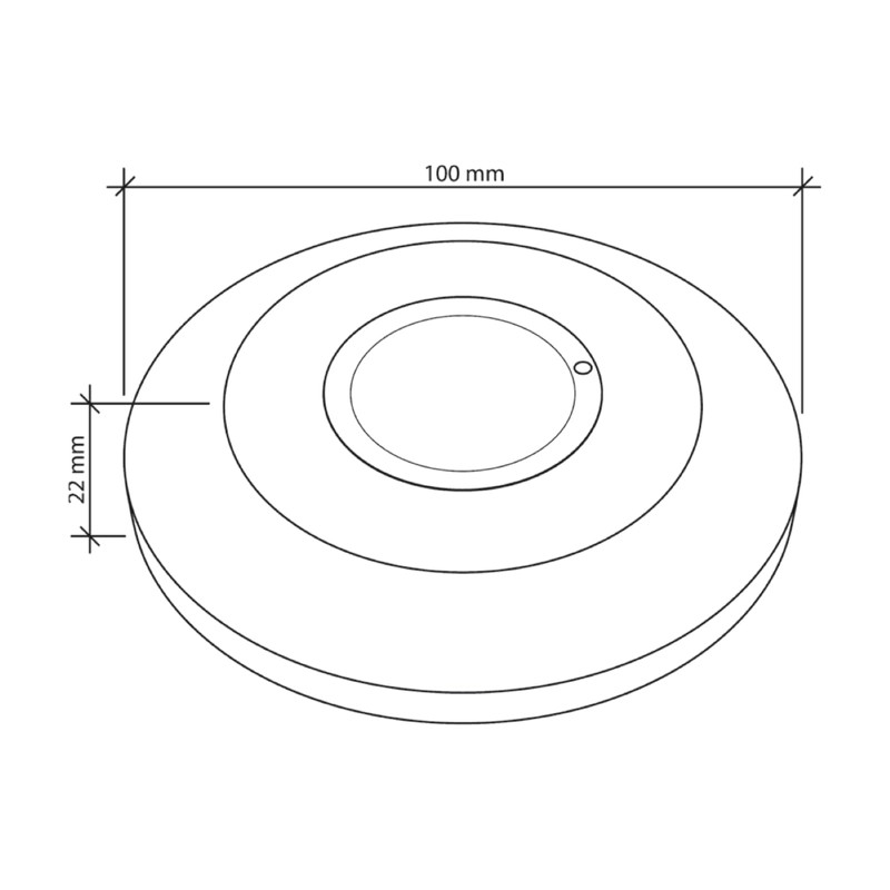 • SEBSON Motion sensor for indoor and surface-mounted ceiling mounting, dimensions diameter 100 x 22 mm.