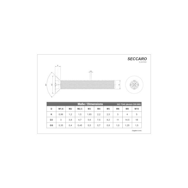 - Material: stainless steel (VA, V2A, A2), standard: DIN 965