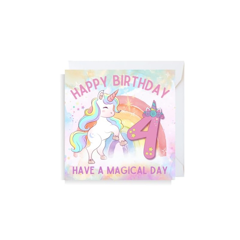 Second Ave Cute Pink Unicorn 4th Birthday Age 4 Square Birthday Greeting Card for Girl
