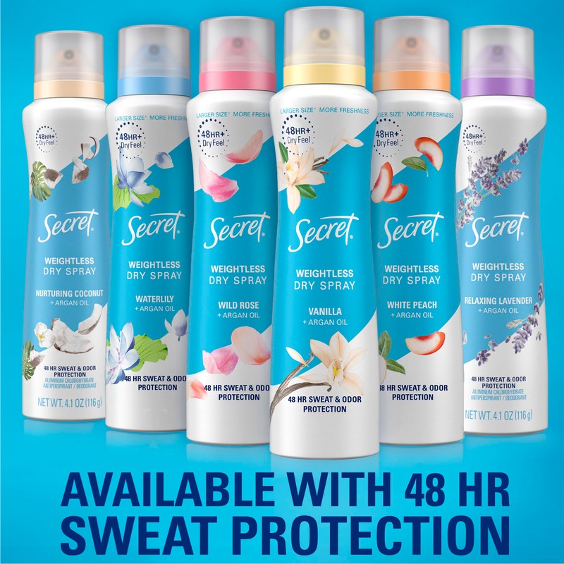 Secret Dry Spray Antiperspirant Deodorant, Nurturing Coconut and Argan Oil, 4.1 oz (Pack of 3)