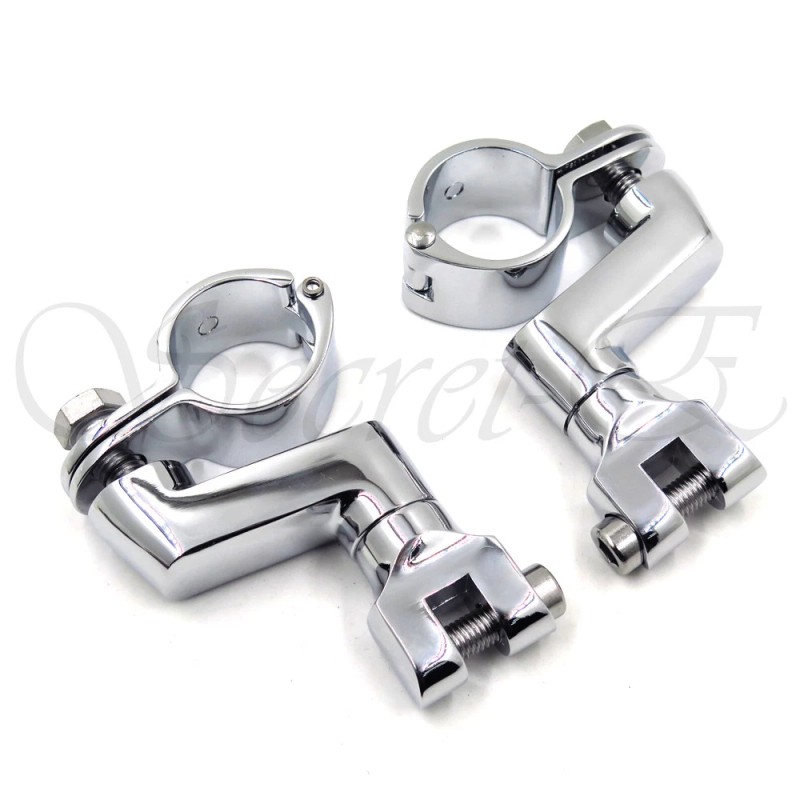 Secret-E Chrome Motorcycle 1.5" Engine Guard Highway Bar Pegs Foot Peg Mounts Clamp