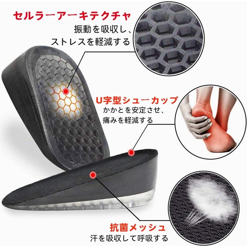 Secret Insole: 0.6 / 1.0 / 1.0 / 1.4 / 1.8 inches (1.5 / 2.5 / 3.5 / 4.5 cm) Insole, For Heels, Shock Absorption, Heel Cushion, Increase Height, 3 Layer Construction, High Elasticity, Anti-Slip,
