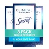 Secret Secret Clinical Strength Soft Solid Antiperspirant and Deodorant for Women, Free & Sensitive, 1.6 oz, Pack of 3