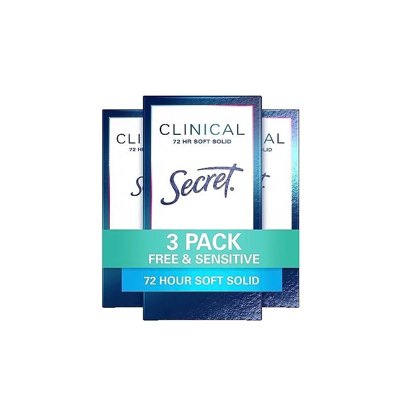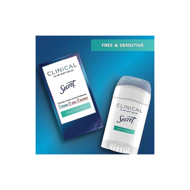 Never let them see you sweat! Secret Clinical Strength Antiperspirant and Deodorant for Women is clinically proven protection for 3 types of sweat; 1) stress sweat, 2) heat sweat and 3) activity sweat. Secret Clinical Strength offers the wetness protection of a prescription-strength product formulated to be gentle on skin, making it perfect for everyday use. Secret Clinical Strength Soft Solidadvanced protection to take on even the most stressful days. Also available in invisible solid and clear gel.