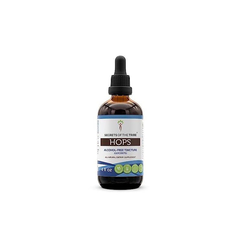 Secrets of the Tribe Extracto líquido sin alcohol de tintura de lúpulo, flor seca de lúpulo (Humulus Lupulus) (4 onzas líquidas)