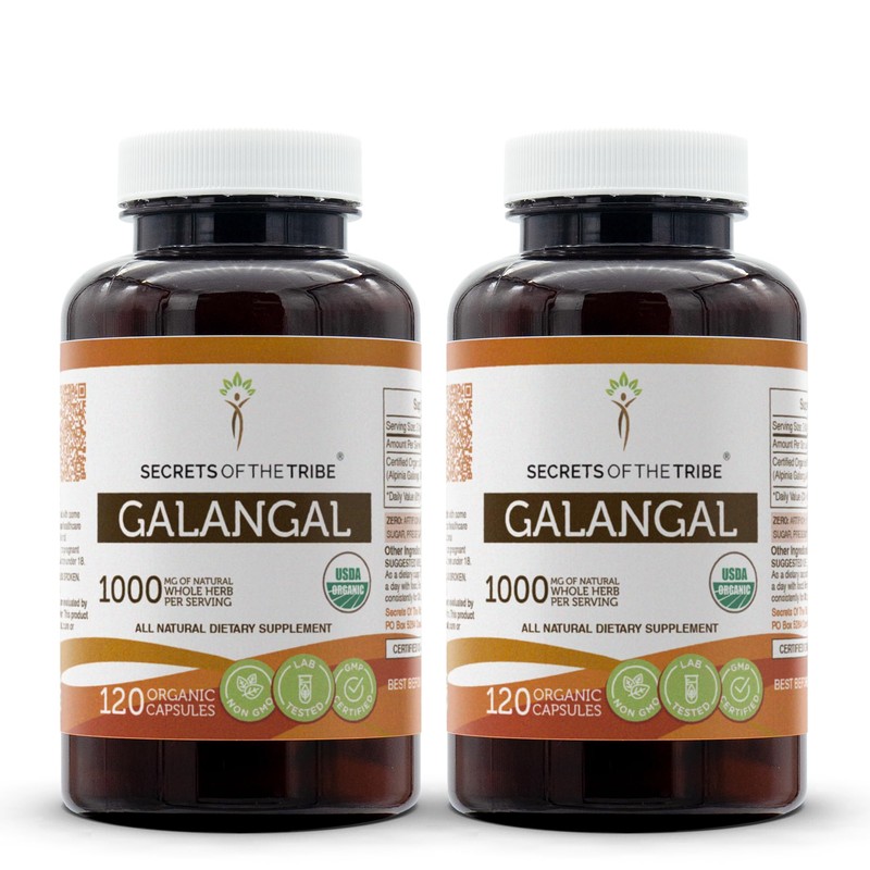 Secrets of the Tribe Galangal 120 Capsules (2 pcs.), 1000 mg, USDA Organic Galangal (Alpinia Galangal) Dried Root (2x120 Capsules)