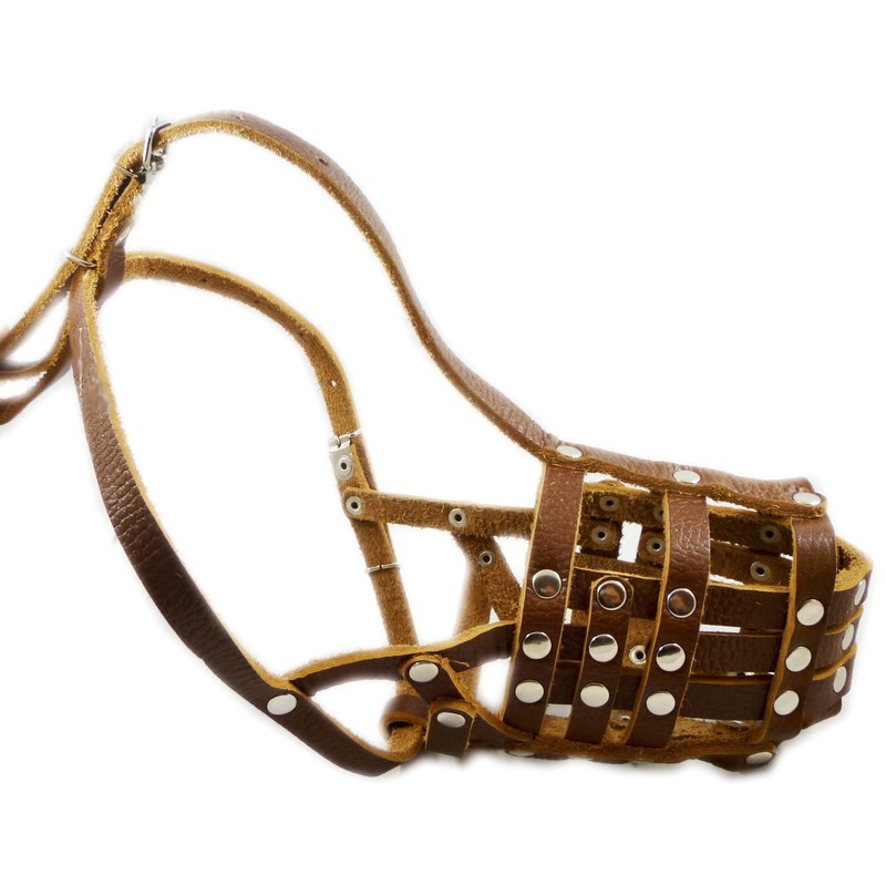 Secure Leather Mesh Basket Dog Muzzle #12 Brown - Doberman, Collie (Circumference 11.5", Snout Length 5")