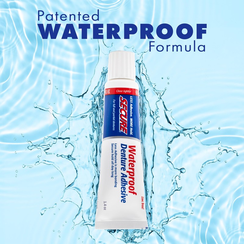 Secure Waterproof Denture Adhesive - Zinc Free - Extra Strong 12 Hour Hold - 1.4 oz (Pack of 4)