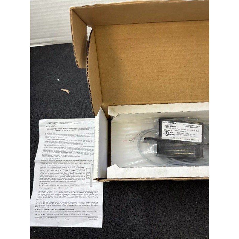 Securitron, MSS-1C, Assa Abloy Concealed High Security Door Window Switch Sensor
