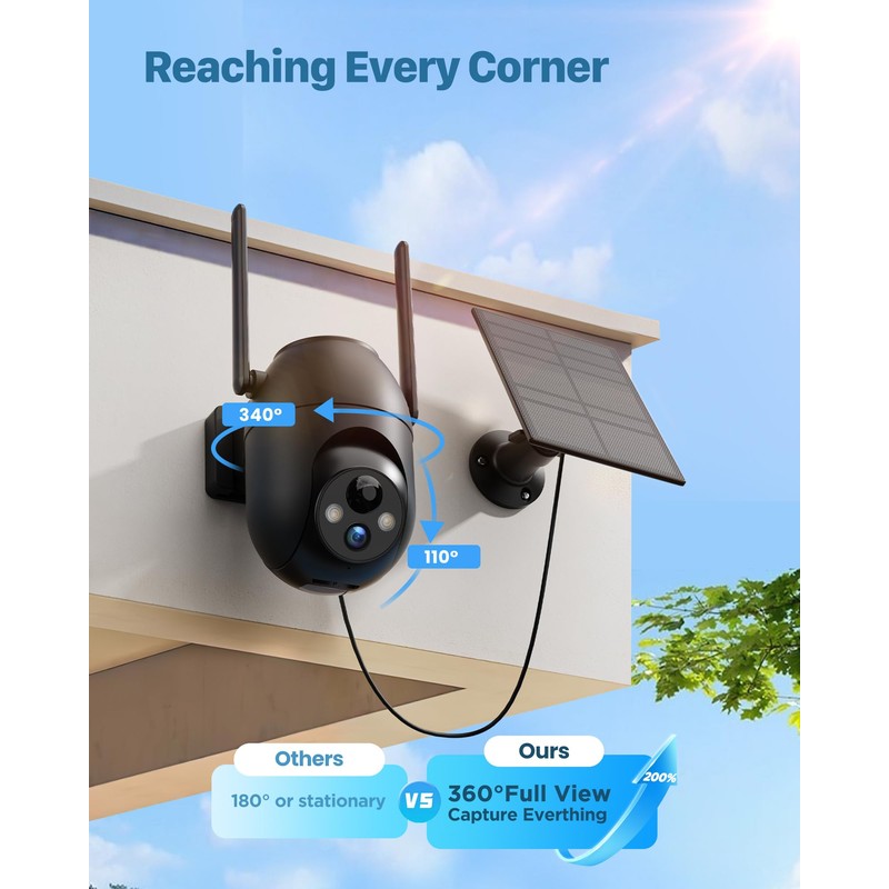 - 【Multifunctional Wireless Security Camera Outdoor】IP65 waterproof, sound and light alarm, PTZ 360° coverage, ensuring that you can always keep track of your home situation and protect your property safety. If you encounter any problems during use, please contact us at anytime. We will provide you with satisfactory service.