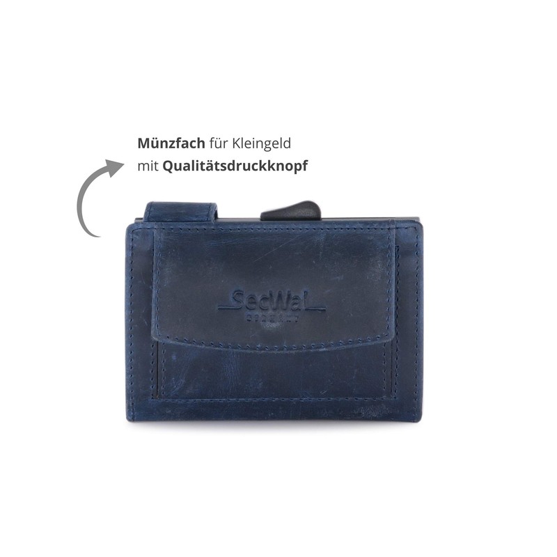 SecWal Card Holder With Coin Compartment, Press Stud - Blue -
