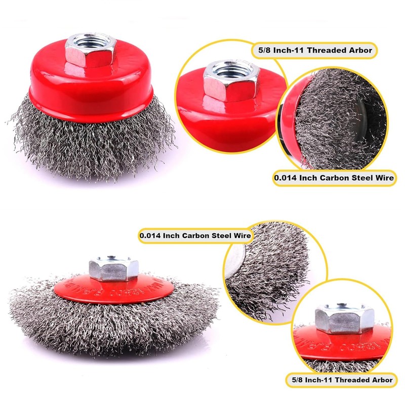 - Safety and reliability: the wheel brush is made of reinforced steel and a large hexagonal threaded arbor to prevent the wire from breaking and falling during the process of heavy work.