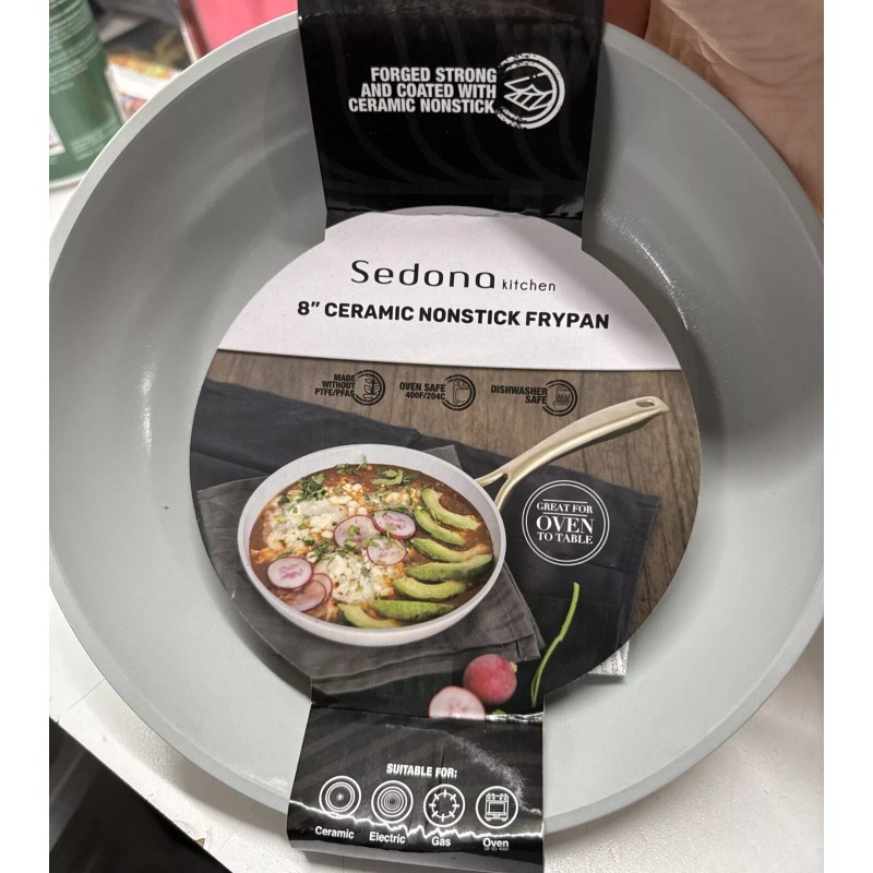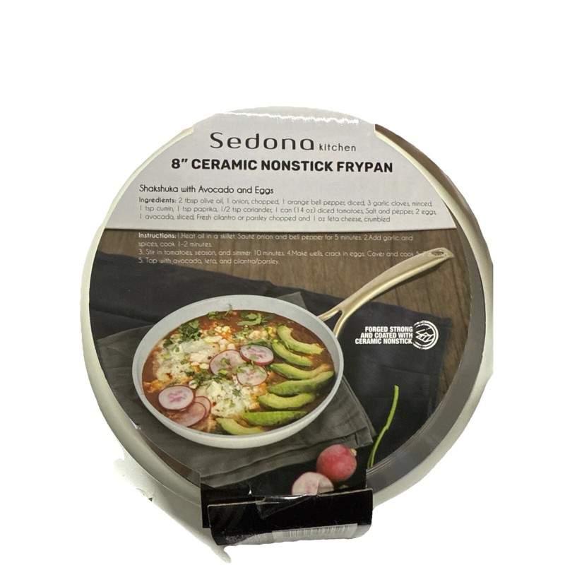 The Sedona brand frying pan features a ceramic surface coating and comes in a beige color. It is perfect for frying and grilling different types of food. This frying pan is a great choice for those who are looking for a durable and reliable cooking tool.