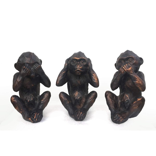 See Hear Speak No Evil Monkeys Three Wise Ape Figurine Statue Set of 3 6.5"