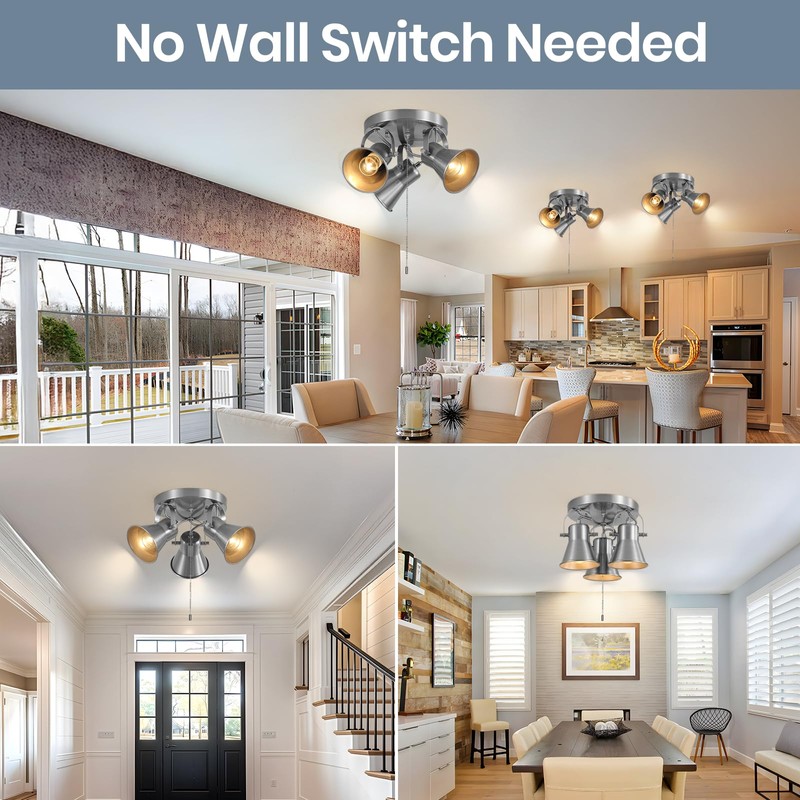- Pull Chain On/Off Switch Ceiling Light:This ceiling light is ideal for spaces without a wall switch. With its convenient pull chain on/off switch and adjustable chain length, you get easy control and a sleek design. Ideal for closets, attics, garages, and more.
