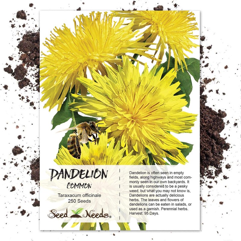 • Quality Dandelion seeds packaged by Seed Needs. Intended for the current and the following growing season. Packets are 3.25" wide by 4.50" tall and come with a full colored illustration on the front side, as well as detailed sowing instructions on the reverse.