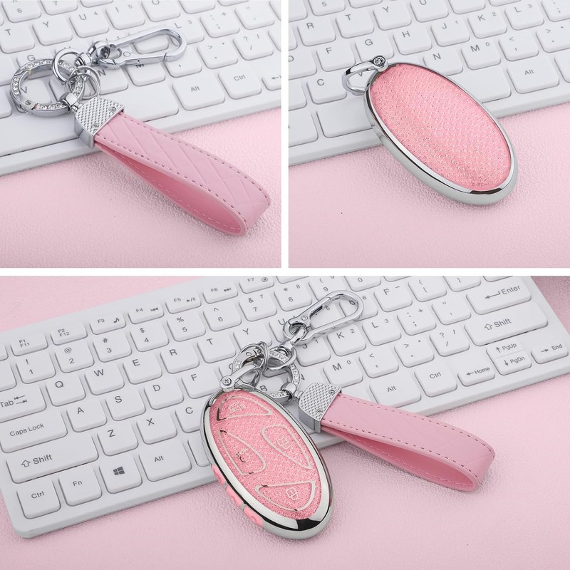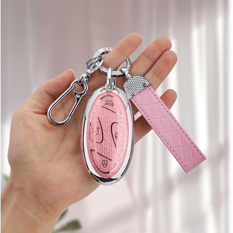 Seedwee for Hyundai 7 Buttons key fob cover, Soft TPU Keys Protector Bling Key Fob Keychain for Hyundai Ioniq 6 Santa Fe, Grandeur, KONA, Elantra - 2022-2025, Silver Pink