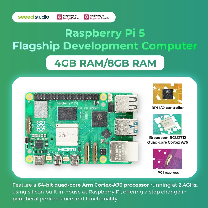 - ●Powerful Pi 5: Latest credit card-sized computer with 4GB/8GB RAM options. 2.4GHz quad-core processor delivers 3x faster performance.