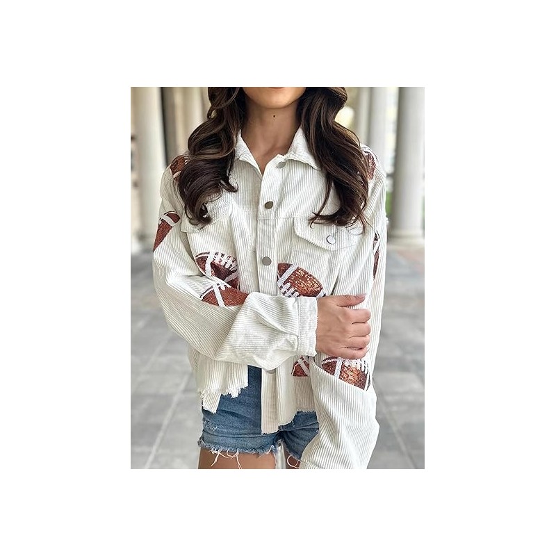 - Women long sleeve corduroy rugby jacket game day outfit, made with soft material, comfortable to wear