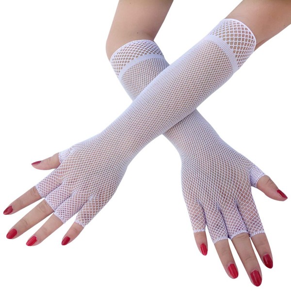 Seeksmile Elbow Length Half Finger Fishnet Gloves (White)