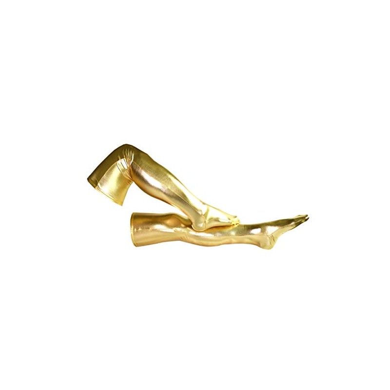 Seeksmile Unisex Shiny Metallic Spandex Skintight Stocking (60 CM, Gold)