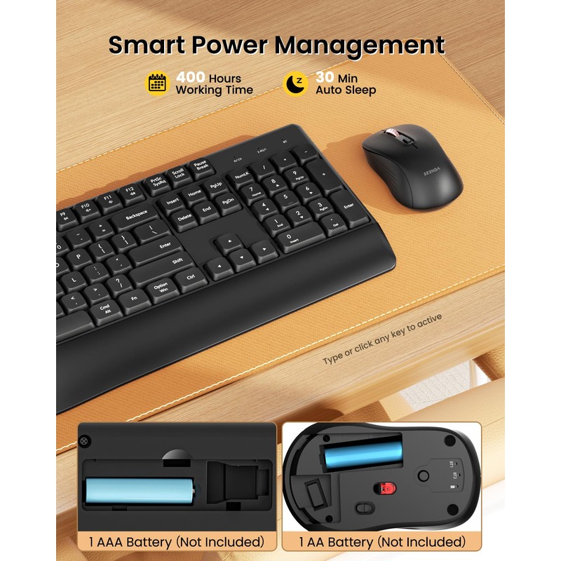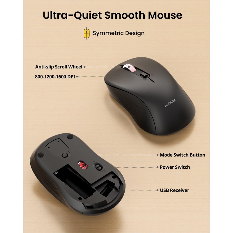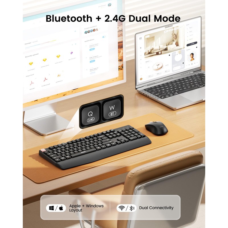 seenda Bluetooth Keyboard and Mouse, USB + Bluetooth Multi Device, Ergonomic ...