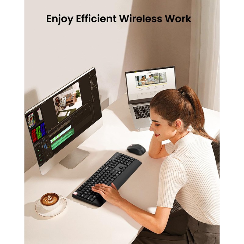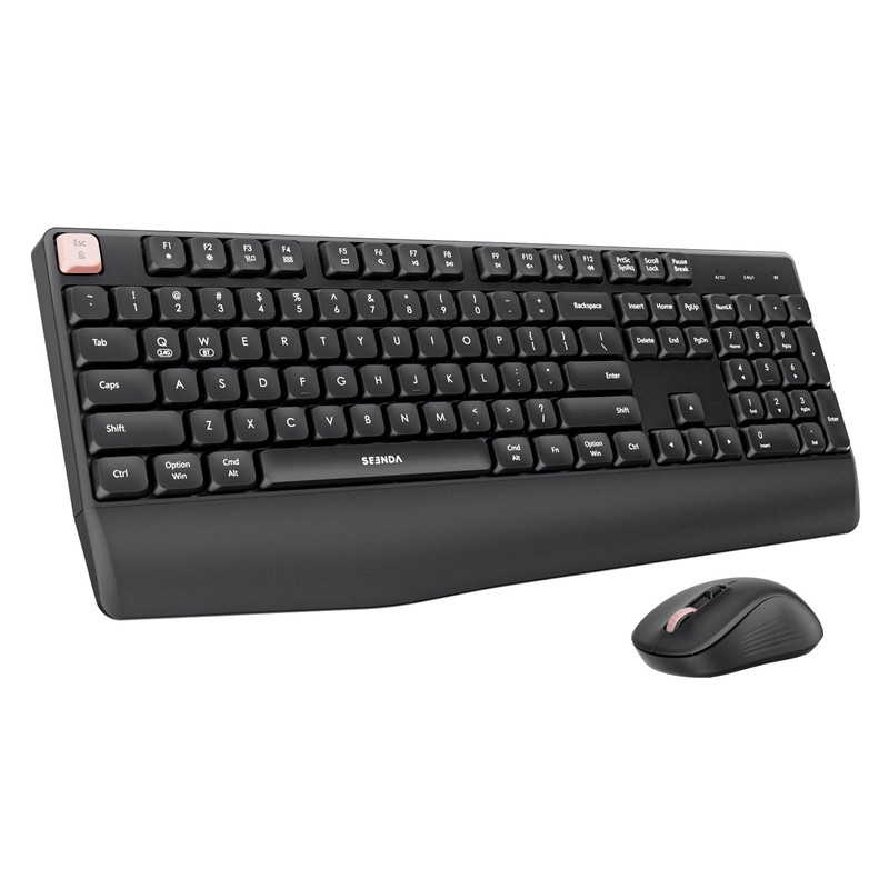 • seenda Wireless Keyboard and Mouse, 2.4G Multi Device, Ergonomic Keyboard Mouse Set, Full-Size Wireless Combo Compatible for Mac OS/Windows PC Computers Laptops - Pink Button