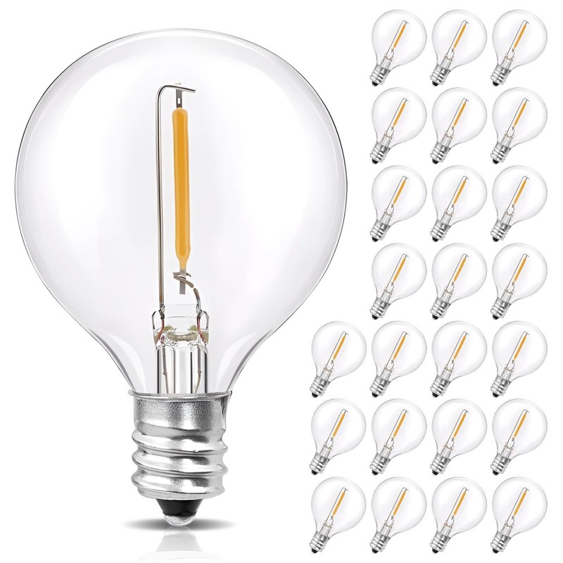 Seentech 25 Pack G40 Replacement LED Light Bulbs E12 Candelabra Base 1Watt to Equivalent to 5 Watt Warm White 2700K Choice for Warm, Globe String Lights & Home Decor