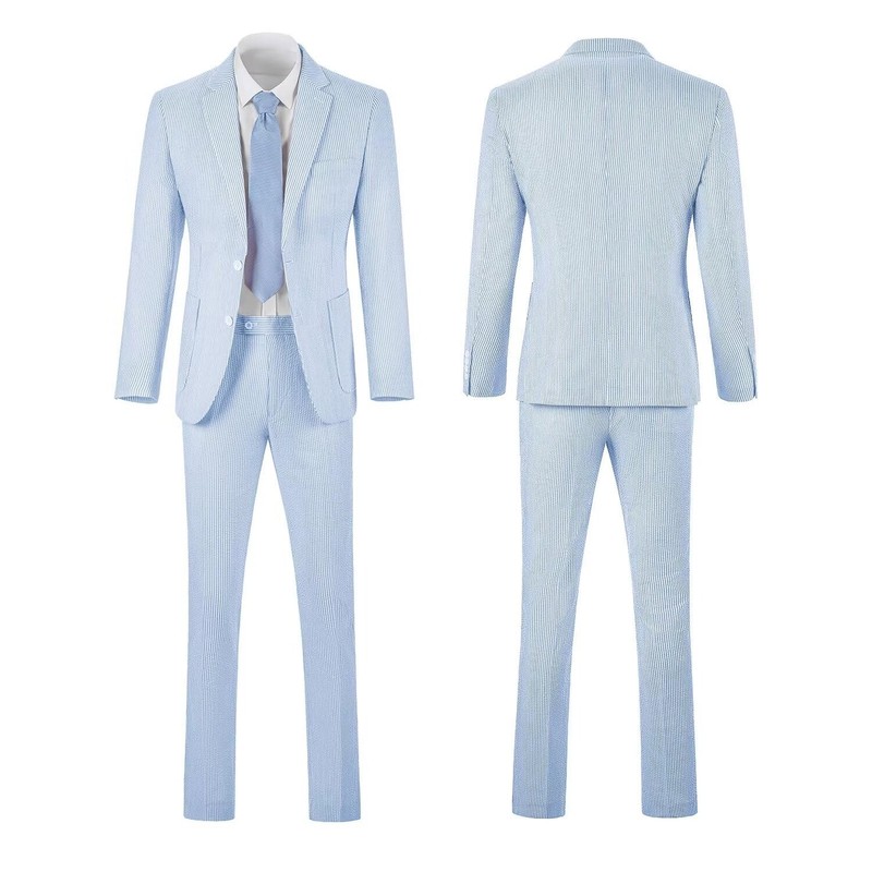 • You can get:Jacket + Pant ,2-Piece Seersucker Suit.Seersucker fabric,comfortable,breathable and lightweight,summer 2 piece suit set.
