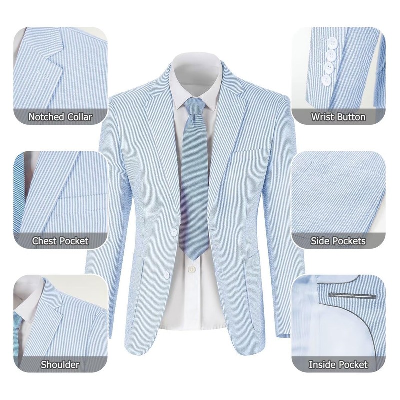 • Stylish Design:Classic Designs,Single Breasted ,Notched Lapel ,2 Buttons Seersucker Summer Formal Slim fit Blazer Jacket Pant.