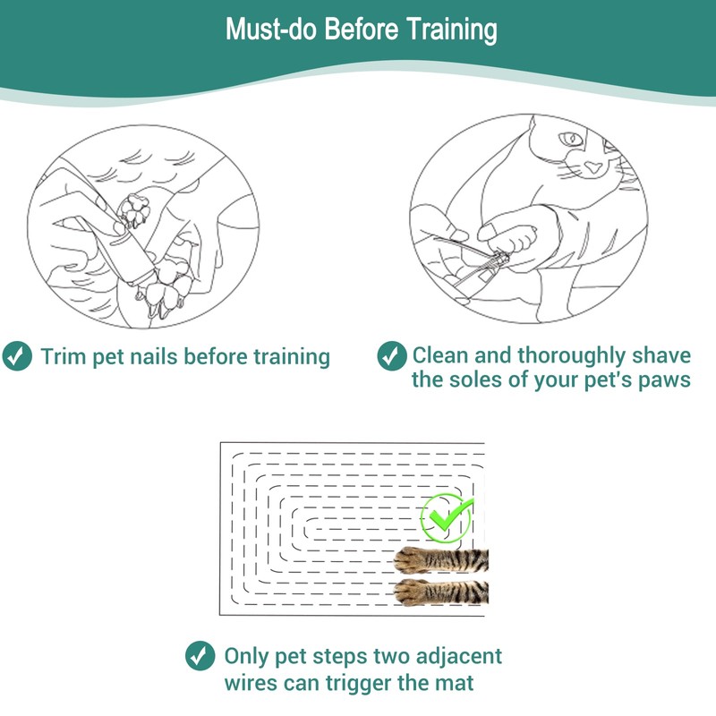 - EASY TO USE & CLEANUnfold the mat, roll it inside out and stretch(pull) both sides to get a flat mat, place the shock mat indoor on the area you want your pets to avoid, short press to activate the scat mat, short press to select modes, when your pet steps on the mat, they will receive a safe yet startling static correction. It is easy to clean with wet soft towel. Detailed user manual is included, kindly read the user manual before use