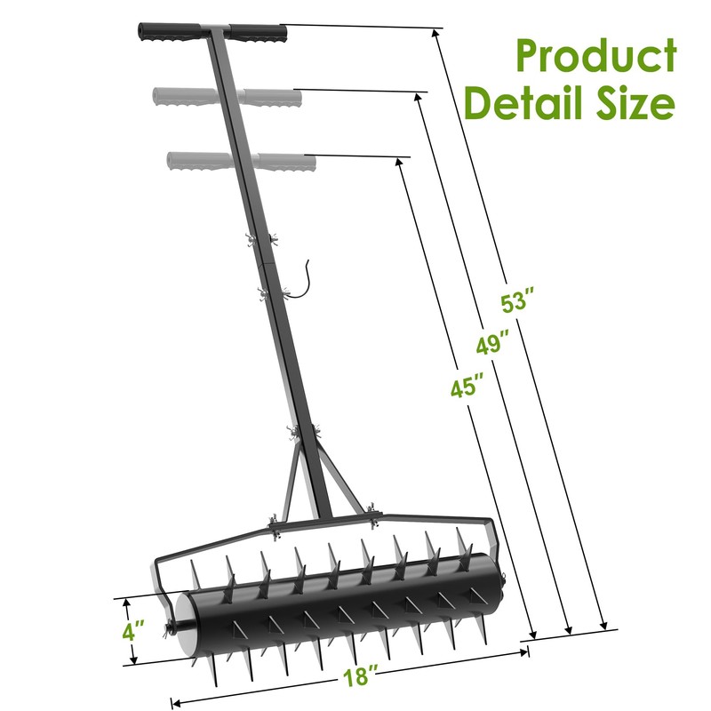 - 【The First Choice Tool for Lawn Aerator】18 inch lawn aerator tool with 3 heights adjust, ergonomic design allows you to take care of your lawn without back strain. The padded T-bar adds to the feel and makes manually aerating your lawn, yard, garden easy and enjoyable