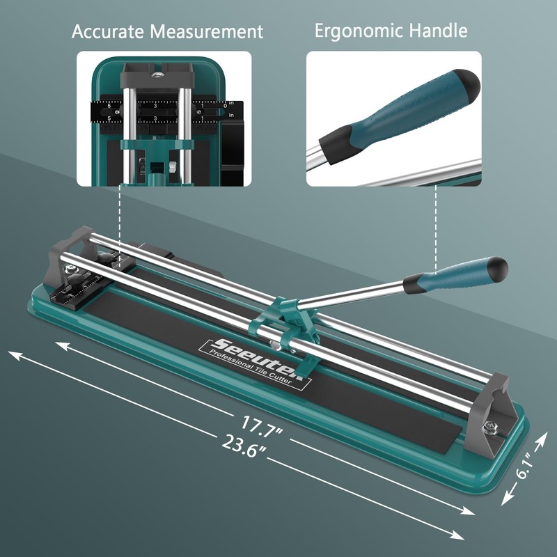 Seeutek Manual Tile Cutter, 14 inch Professional Porcelain Ceramic Tile Cutter, Double Rails Design Tile Cutter Tool, with Tungsten Carbide Cutting Wheel
