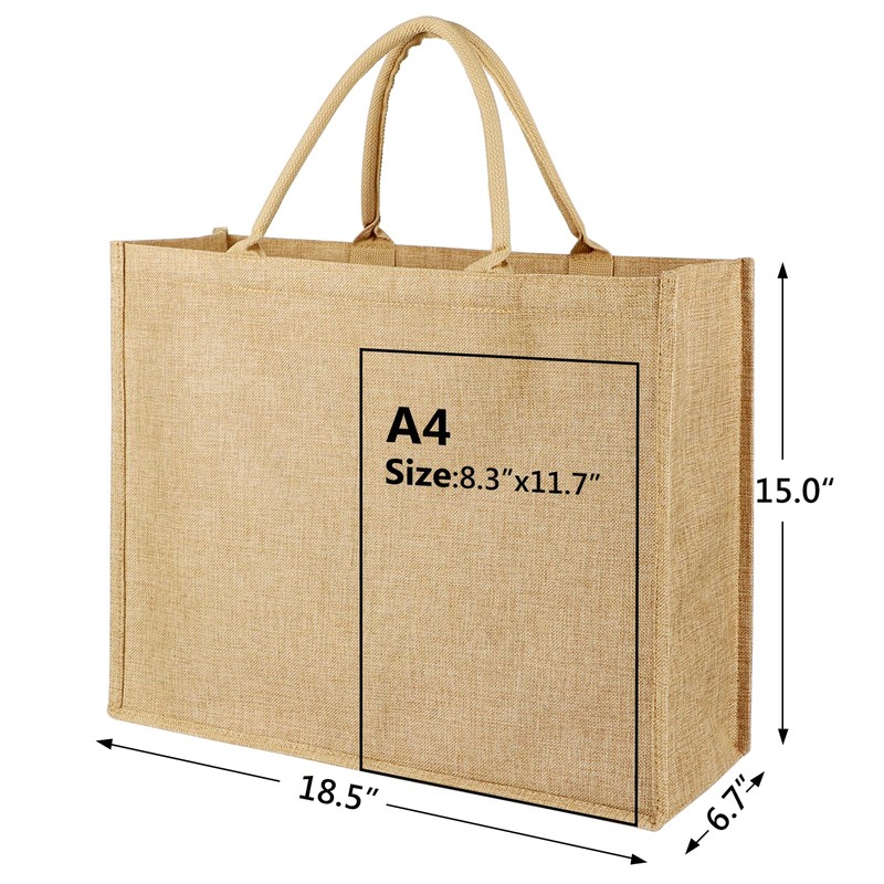 - Attractive Reusable Shopping Bags:If your area eliminated plastic bags as well as the store charges for paper bags, this portable reusable jute shopping bag is definitely a nice choice. The bags are strong and sturdy which allow us to carry a good amount of stuff in. Built quite strong, so they can last a long time. Do our part for the environment now.