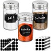 - Spice Bottles with Labels: Our seasoning shakers set contain 136 black labels in 3 unique shapes which meets your different reference; these stickers are waterproof , easy to use and leave no trace after removal. Blank label stickers, allowing you to customize anything, not only spice jars, also dispenser,organizer box, gift bag etc,. Erasable chalk marker and cleaning brush also are included, which is easy to wipe the content off the labels and easy to clean the jars.