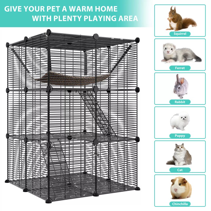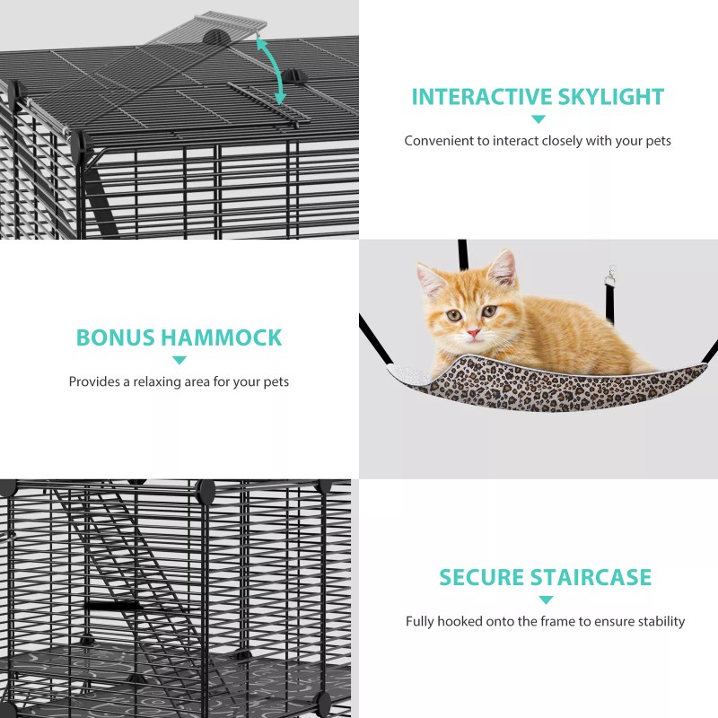 Large Hammock: This multi-functional cat cage also comes with a plush hammock for more fun. It is not only suitable for cats, but also for other small animals such as guinea pigs, ferrets, rabbits and chinchillas.