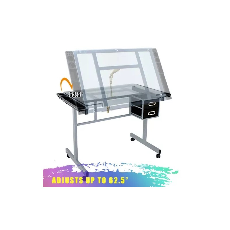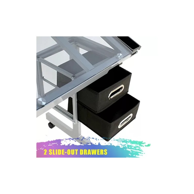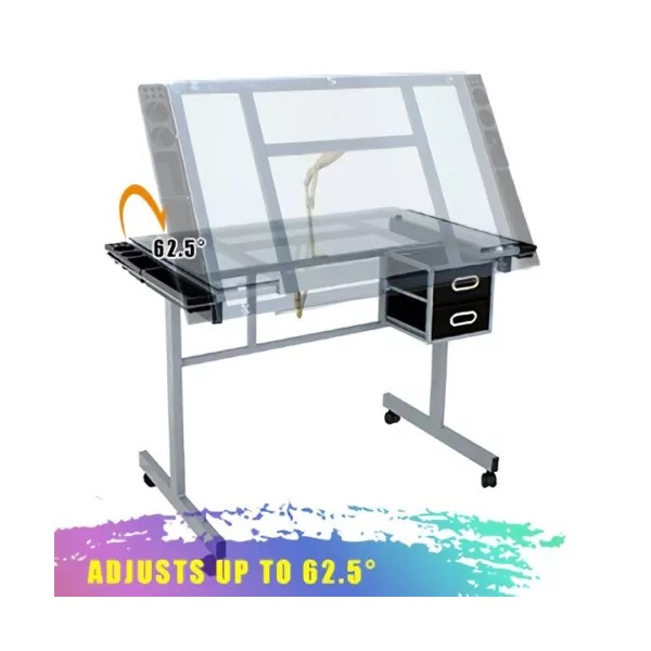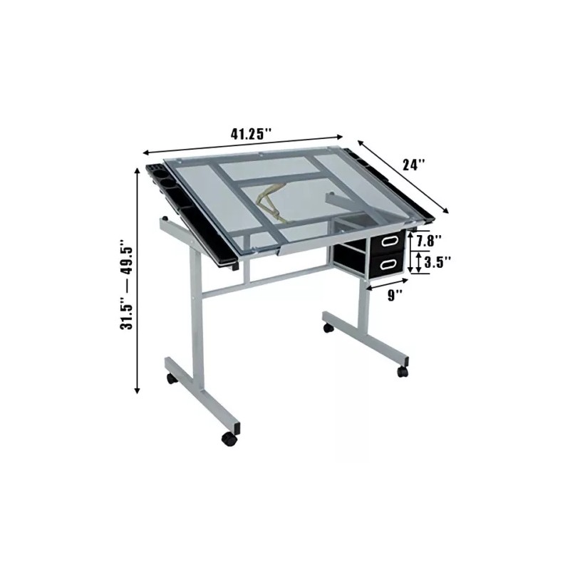 Segawe Drafting Table Station Drawing Desk Craft Station Glass Top Artist Multi Type - Rolling