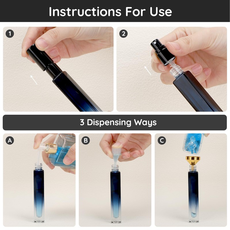 - 【Easy to Refill】Comes with 1*FUNNEL+1*DROPPER+1*PUMP, you can easily dispense liquid into the mini perfume atomizer.