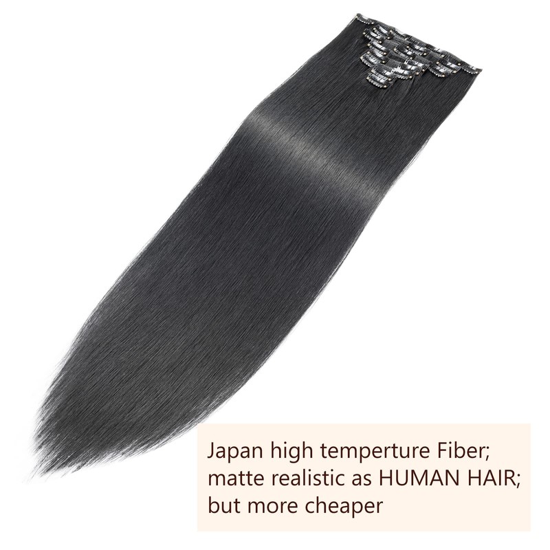 SEGO Clip-In Extensions 8-Piece Set 66 cm Synthetic Straight Natural Black