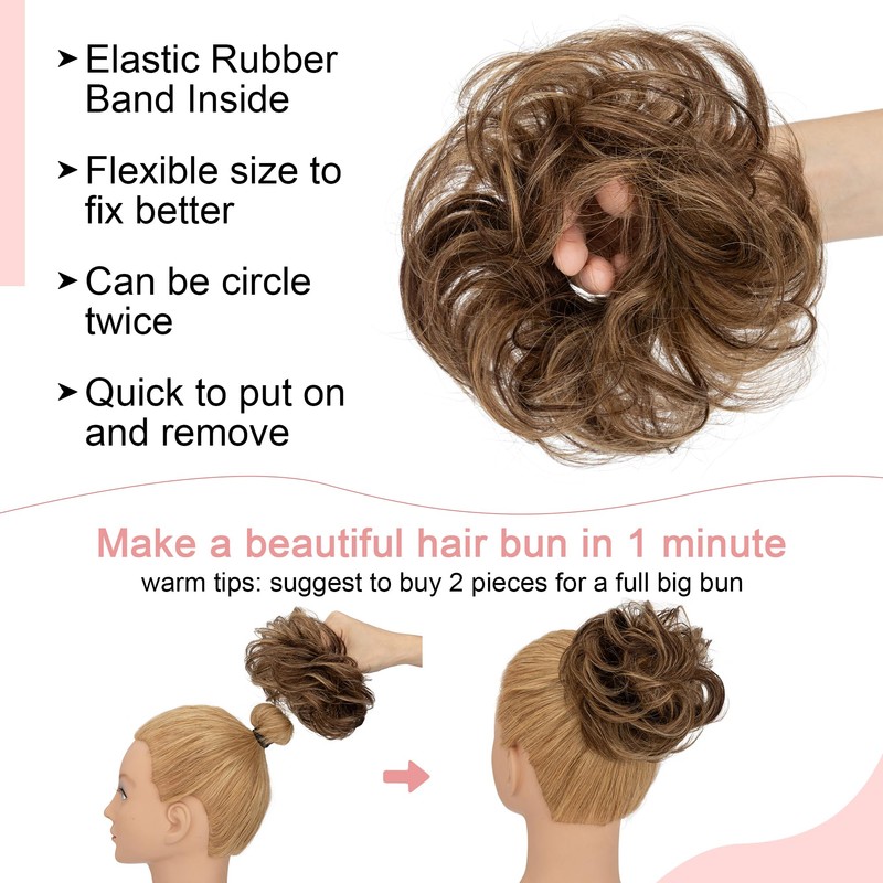 - ♛Create A New Look Just in Seconds♛ Just tie your hair into a ponytail or a bun and then wrap the messy bun hairpiece around your hair to make a funny, casual and chic hairstyle when you get out. The human hair bun extension blends seamlessly with your own hair, wear it high on the head, low at the nape, or off to the side for a natural, elegant or casual chic look.